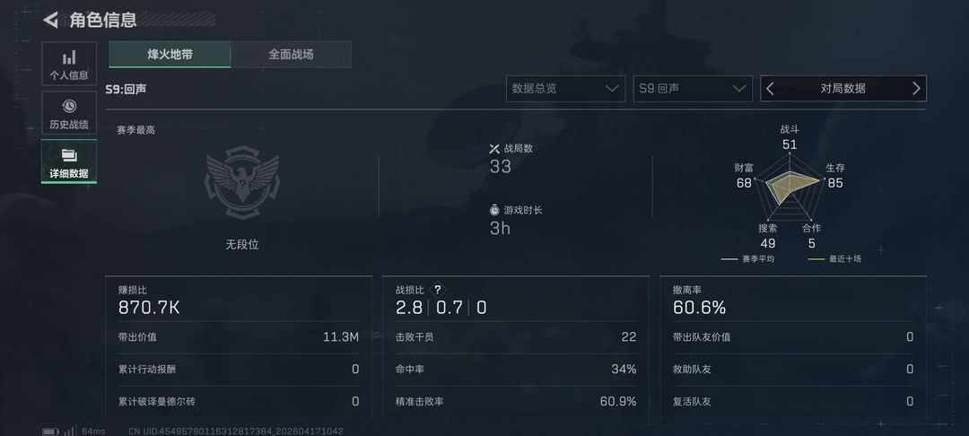 号有干员皮,资产100m,北极星 没币自己跑刀赚