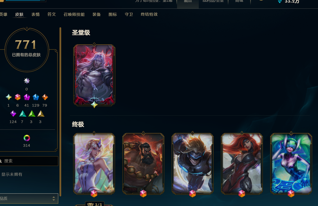 1700+1000皮❤120神话100臻彩❤云顶20神话❤云顶峡谷双全号❤殿堂传奇卡莎VN❤圣堂瑟提