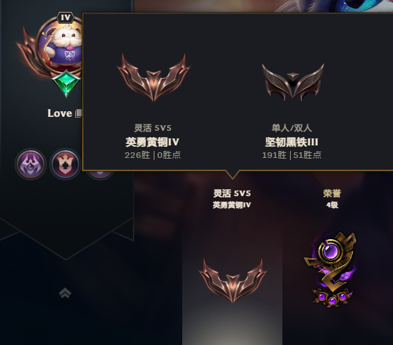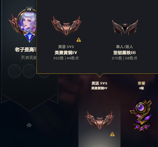 艾欧尼亚❤️500皮可排位❤️单双黑铁❤️灵活青铜❤️匹配负胜率❤️极品虐菜号