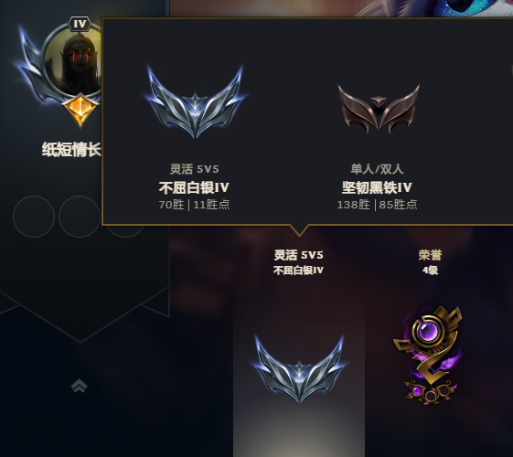 铂金可排位 3限定 2传说 5史诗 18皮肤 9炫彩 53英雄