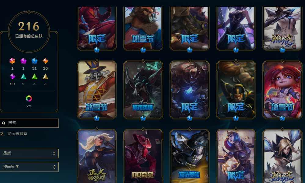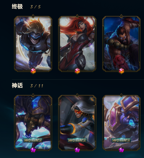 龙虾,冠军锐雯老版皮肤暗杀星一套,射手等等限定皮肤