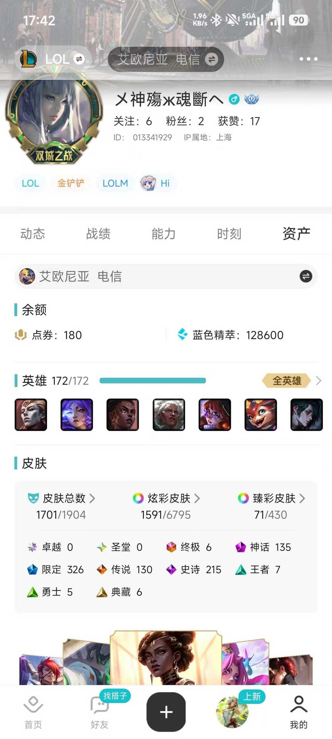 【艾欧尼亚】钻石段位⚡软辅皮肤很齐全可以租给女生⚡殿堂薇恩⚡臻彩和粉炫精美⚡熊猫娃娃拉克丝⚡美女账号