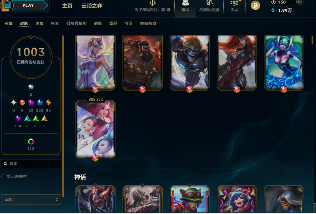 艾欧尼亚8000P〓神话幻想圣洁堕落的神王龙瞎臻彩飞龙在天EDG套〓王国机神黑夜使者真实伤害85传说