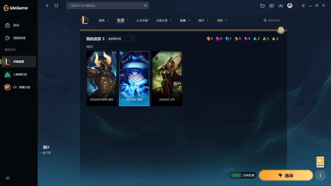 曙光女神;影流之镰;诺克萨斯之手;虚空掠夺者;祖安花火;不屈之枪;寒冰射手;沙漠死神;探险家;疾风剑
