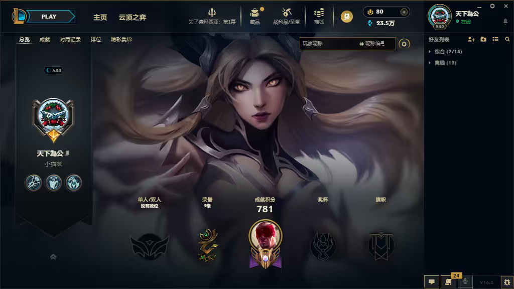 秒S号/可排位/全英雄/皮肤质量高/艾欧尼亚