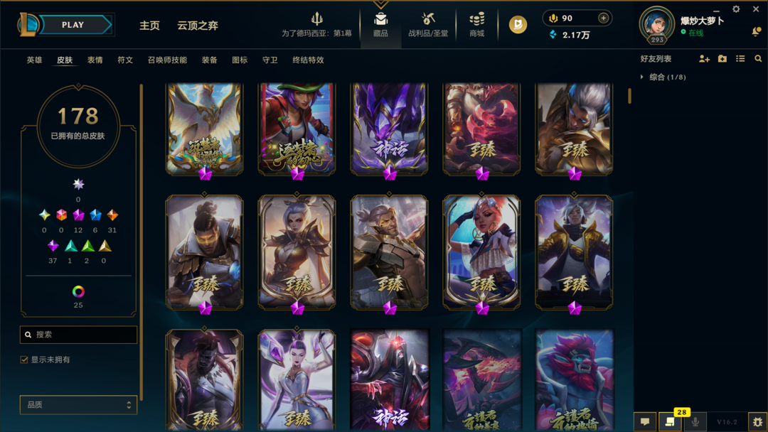 全英雄698皮肤海克斯科技龙年盲僧多传奇史诗传说及至臻至高天天煞劫单双排位未定级可排位