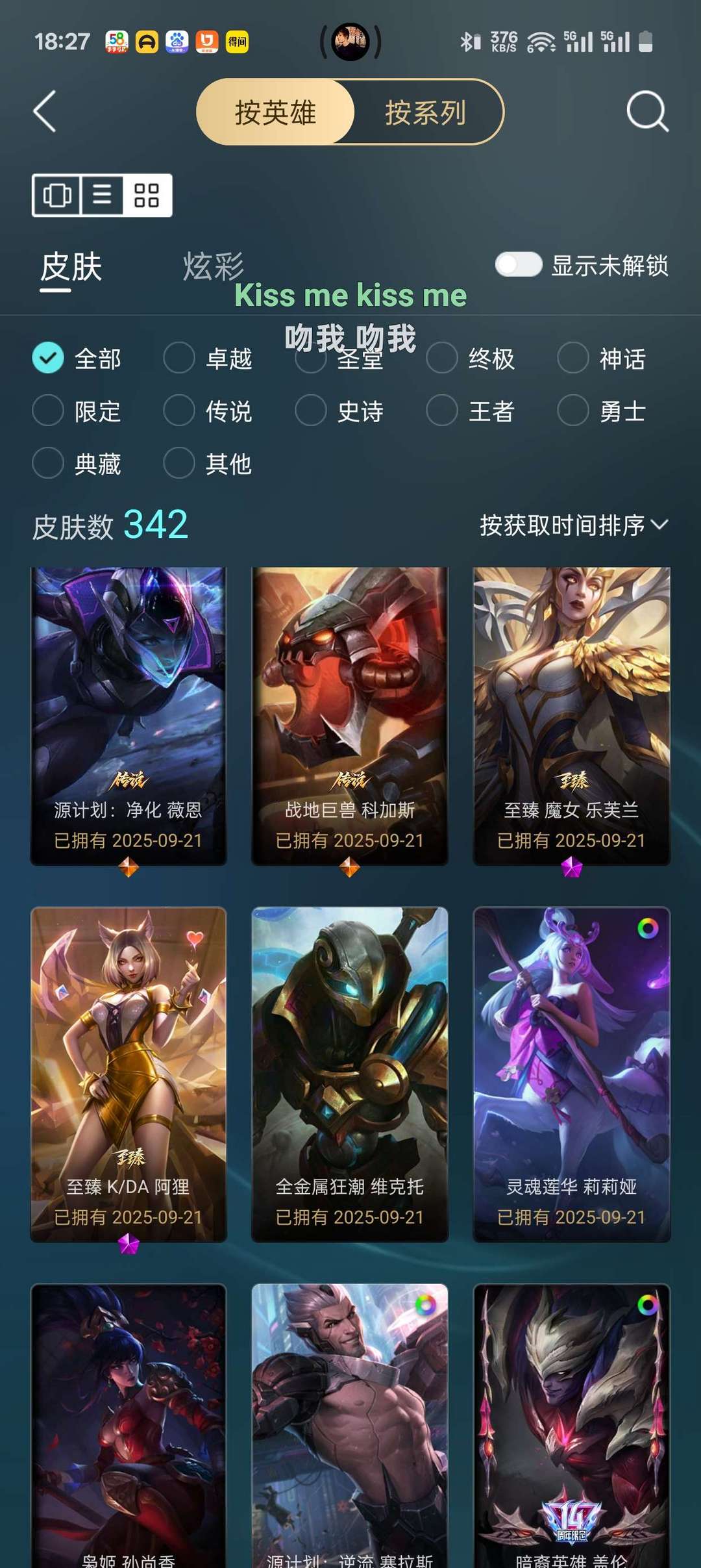 |全英雄|752皮|46神话|120限定|摄魂薇恩|大元素拉克丝|暗星科加斯|海克斯皇子|