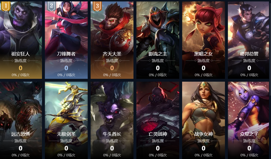虚空恐惧;符文法师;迅捷斥候;寒冰射手;武器大师;傲之追猎者;海兽祭司;黑暗之女;正义巨像;德邦总管