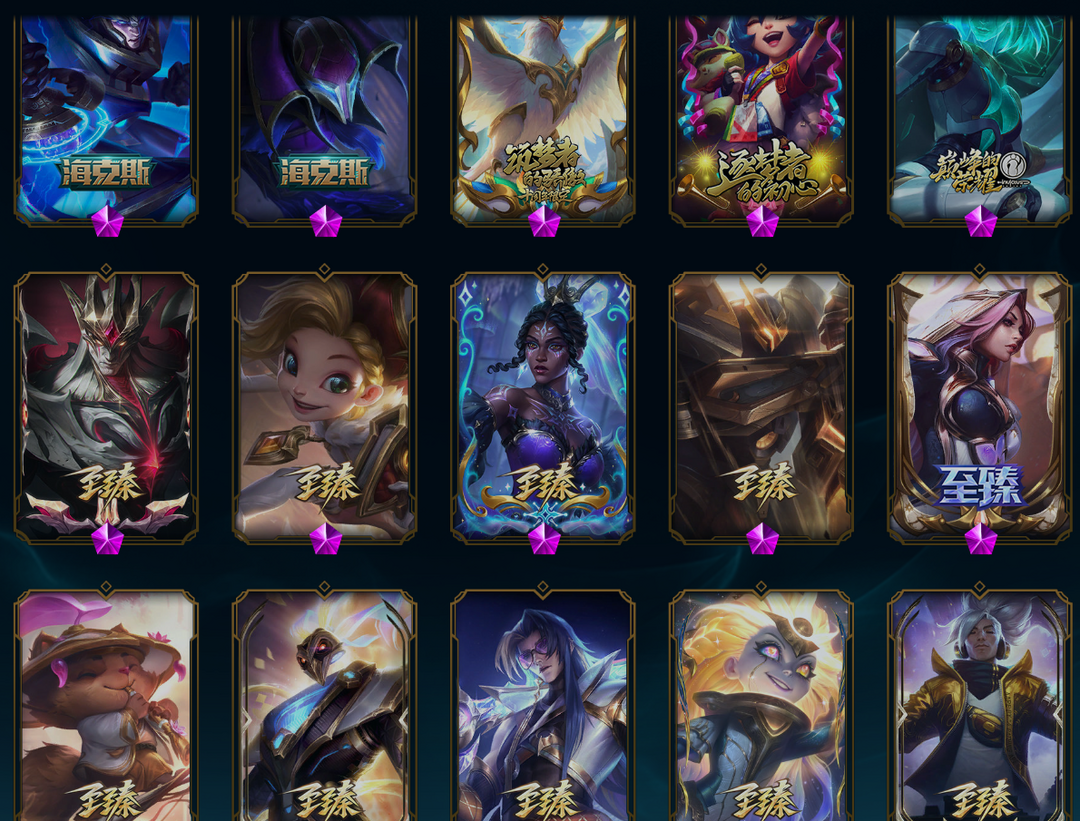 KDA歌姬∽大元素使∽灵魂腕豪∽学院永恩∽电玩女警∽斗魂光辉∽生化诺手∽太空狗头∽冰霜龙女∽弹幕卡莎