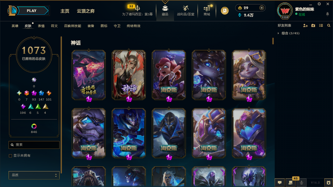 850皮♈可排位白银妹子号♈全英雄♈60神话♈摄魂VN-至臻王国机神-泳池-玉剑传说♈青铜黄金虐菜