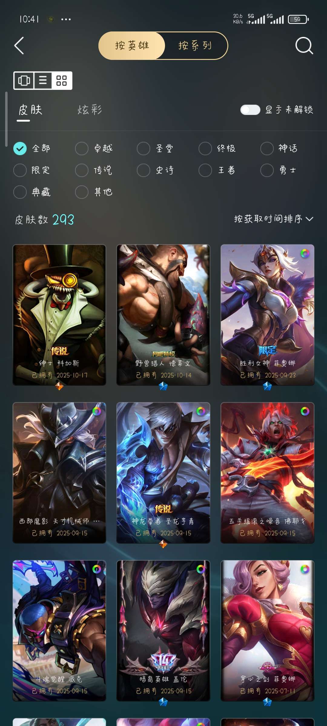 6000皮肤❤️T1冠军签名全套❤️八色金龙瞎❤️全至臻全海克斯❤商城清空