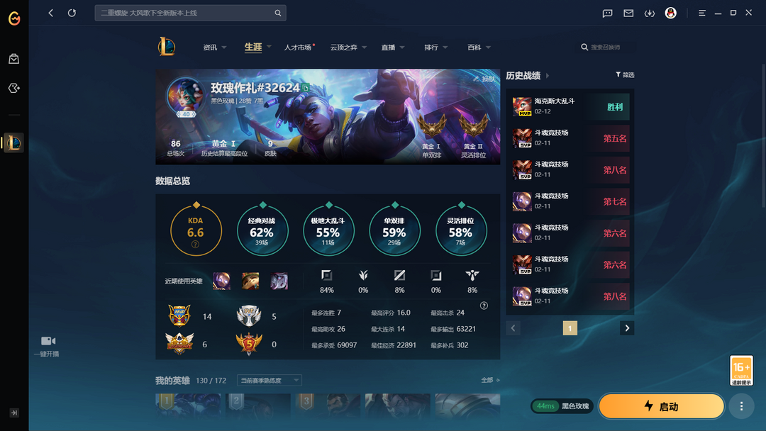 黑色玫瑰·单双黄金1·灵活黄金2·匹配-乱斗-斗魂低隐藏分(陪玩娱乐精品号)