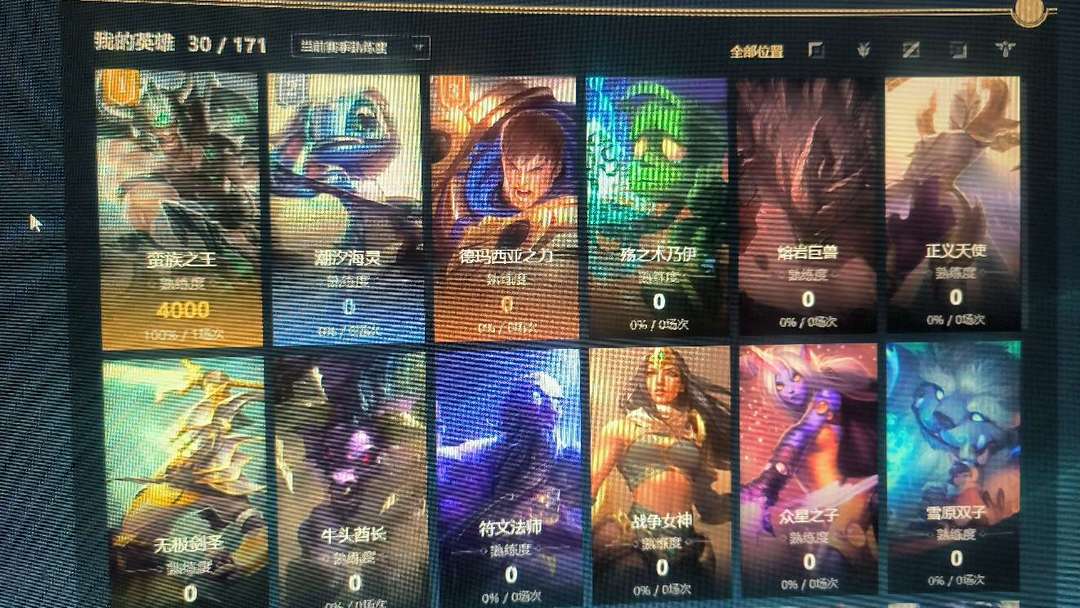 英雄皮肤五十七个,可排位,单双灵活排位黄金,可以租号玩玩感谢大家