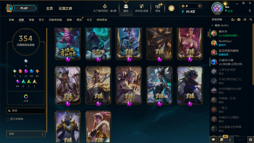 125P英雄❤海克斯小炮❤灵能特工易❤星之守护者EZ❤神拳瞎子❤宇航员泰坦❤吕布奉先❤源计划赛娜❤等