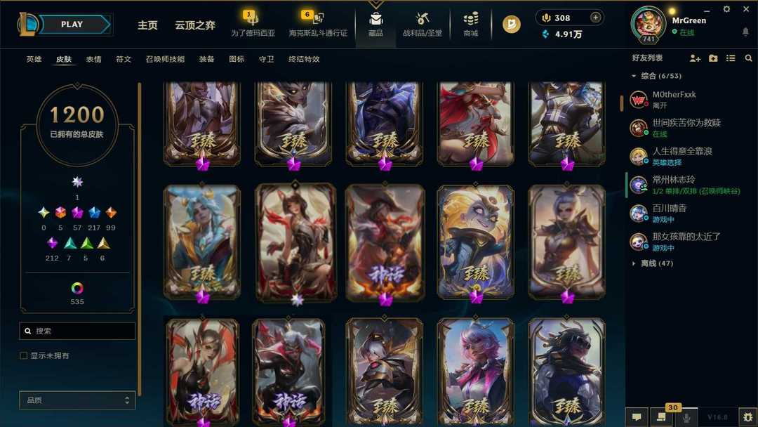 1126原皮❤️热门传说全❤️殿堂卡莎殿堂阿狸❤️斩星魔剑❤️灵活守卫乌迪尔❤️神龙尊者黑夜亚索