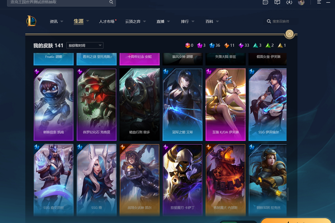 排的都是职业选手和主播,全英雄,可买皮肤,战利品里有皮肤碎片可合成。