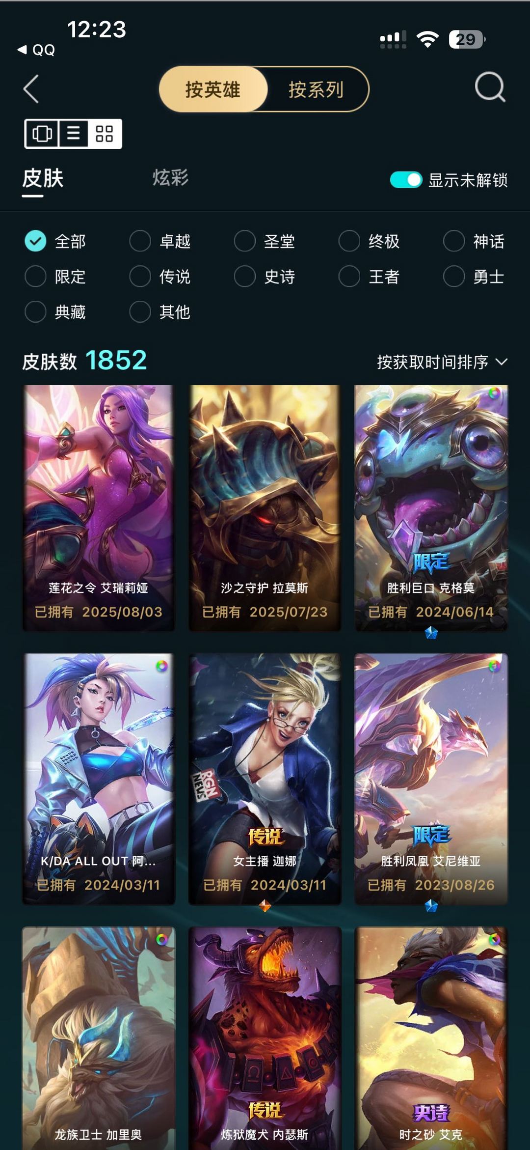 白银段位英雄联盟 可排 全英雄160 皮肤117传说 限定 史诗 亚索拳王