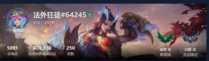 可排位⛰️全英雄⛰️250皮⛰️单双翡翠3⛰️灵活白银3⛰️云顶黑铁2