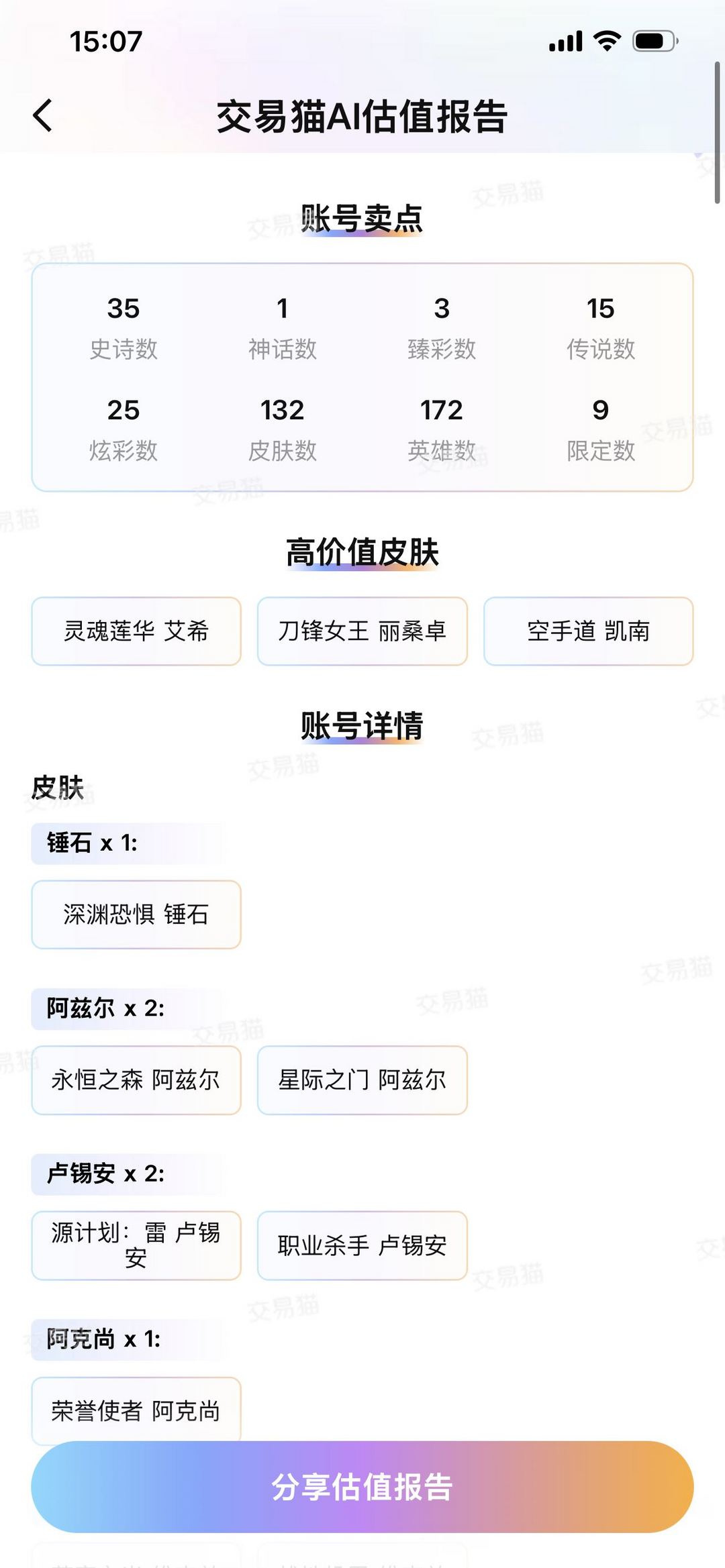 500p♥12至臻皮♥34限定♥25传说♥可排位