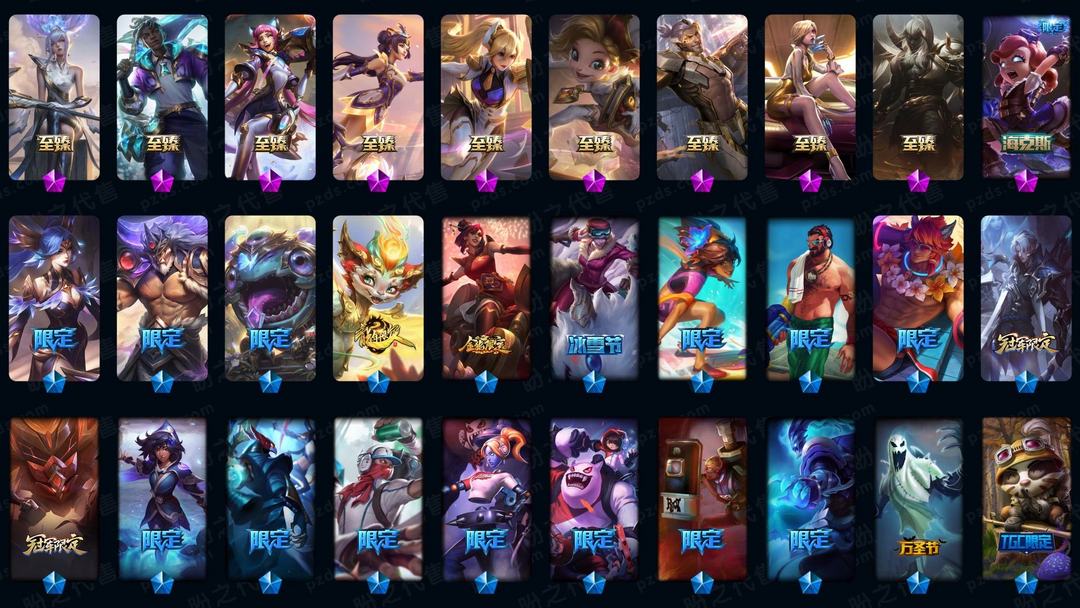 9500皮肤❤新神王全套❤Faker名人堂狐狸❤全至臻海克斯❤全年限周年❤六色龙瞎