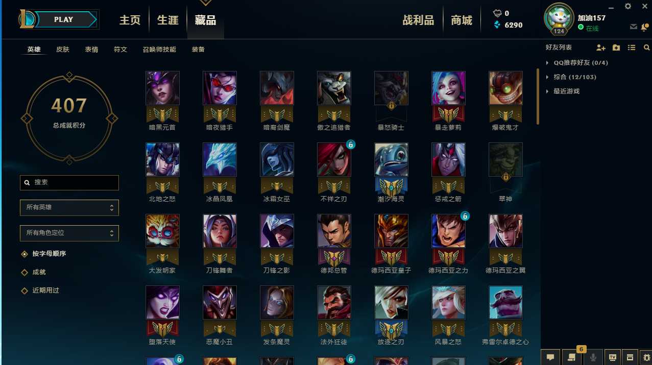 全英雄 接近两百的皮肤 狗年龙虾 舞会公主很多优质皮肤