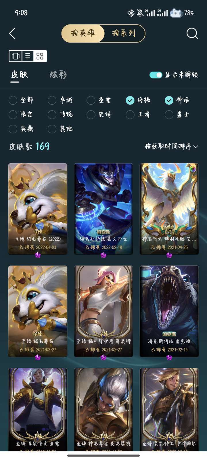 限定居多,琴女龙年,龙刀,德玛张辽,冰雪节限定等等
