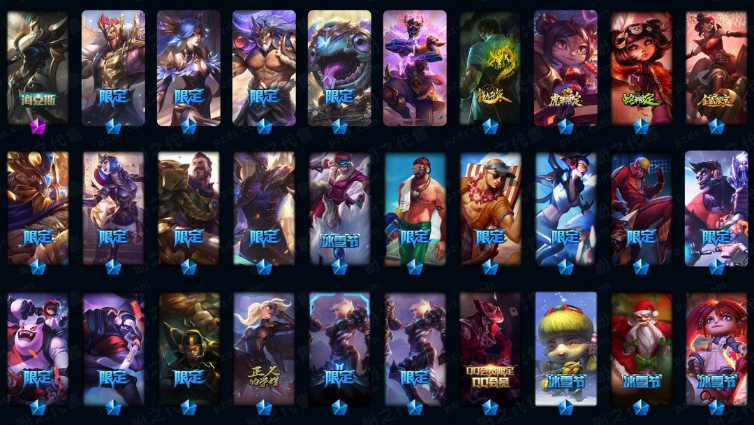 9500皮肤❤全至臻海克斯❤全年限周年❤六色龙瞎❤冰桶莲花