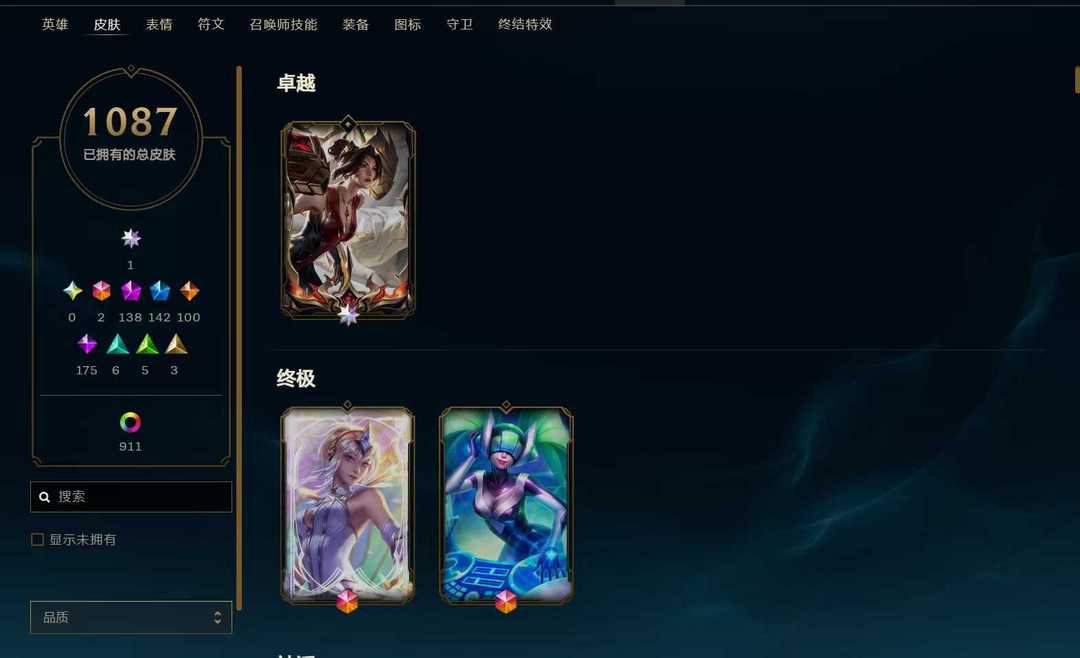 9500皮肤❤️T1冠军签名全套❤️全至臻海克斯❤️全年限周年❤️元老议会
