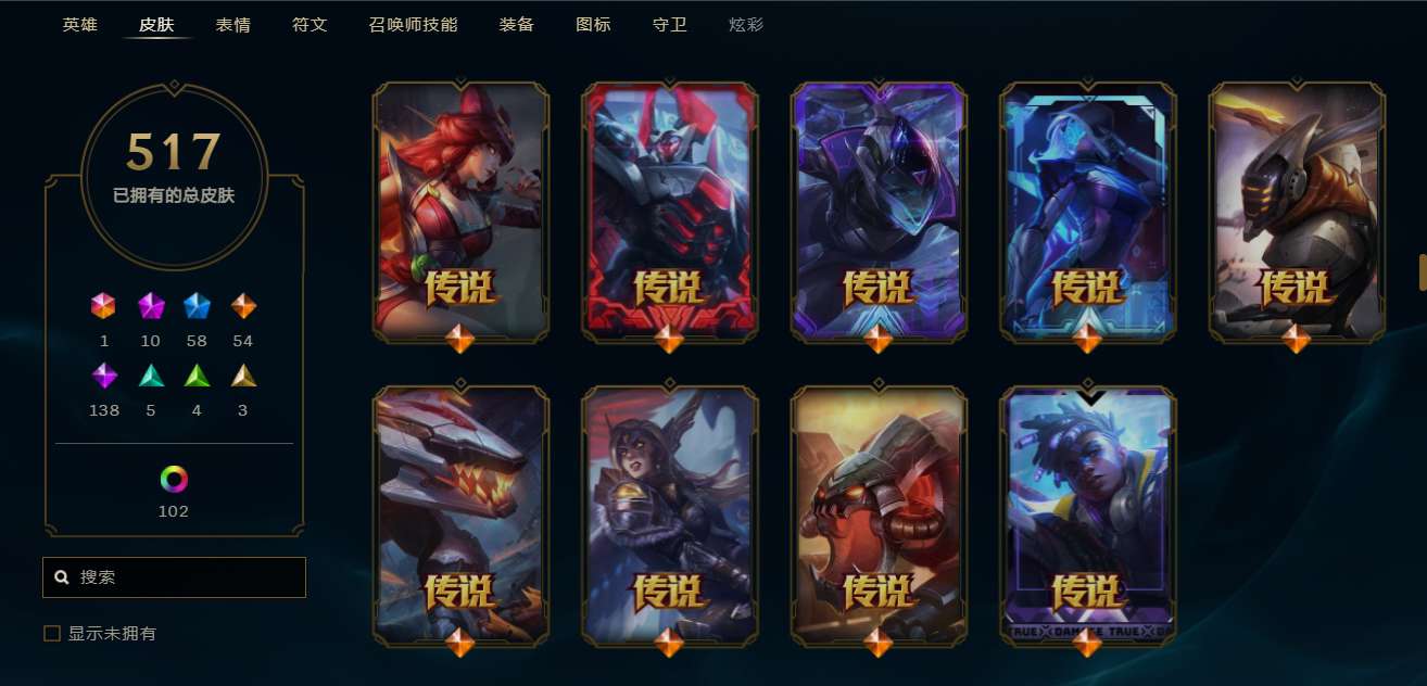 龙瞎 龙刀大量年限及限定皮肤至臻海克斯百分之八十