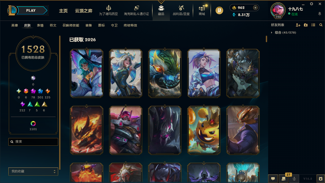 156皮⚡️黑夜亚索⚡️小蜜蜂提莫⚡️海克斯鳄鱼⚡️冰雪酒桶⚡️欧咪咖小炮⚡️不屈狗熊⚡️暗星维鲁斯