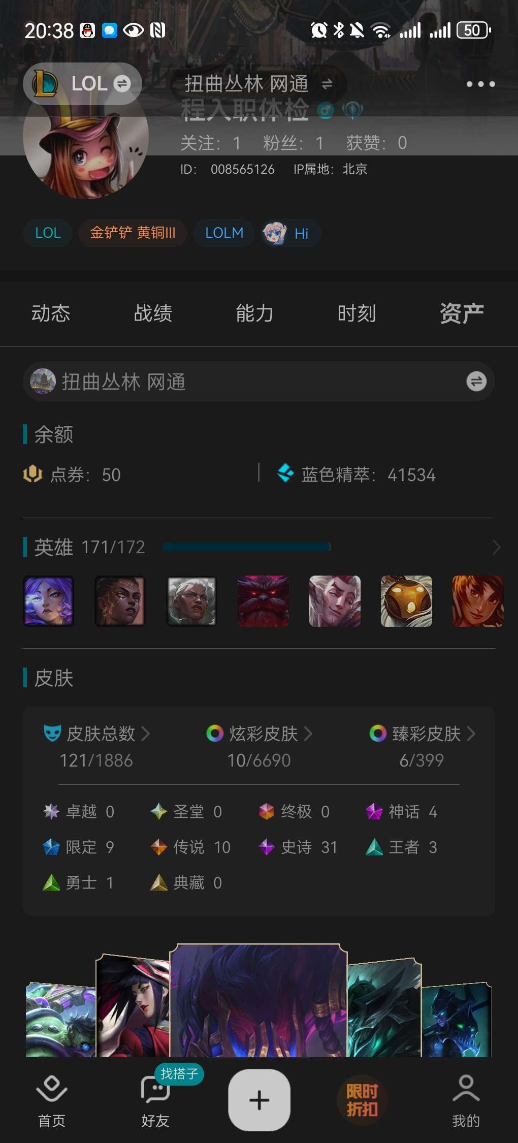 扭曲丛林网六 黄金白金 全英雄 皮肤多