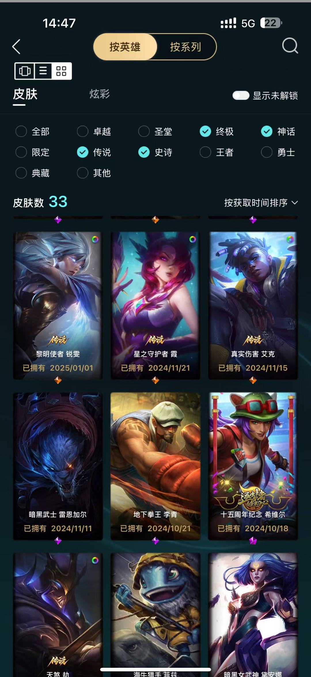1589皮肤〓可排位妹子号白银〓全英雄〓41神话〓19臻彩〓391炫彩〓至臻佐伊劫剑魔李青阿卡丽海克