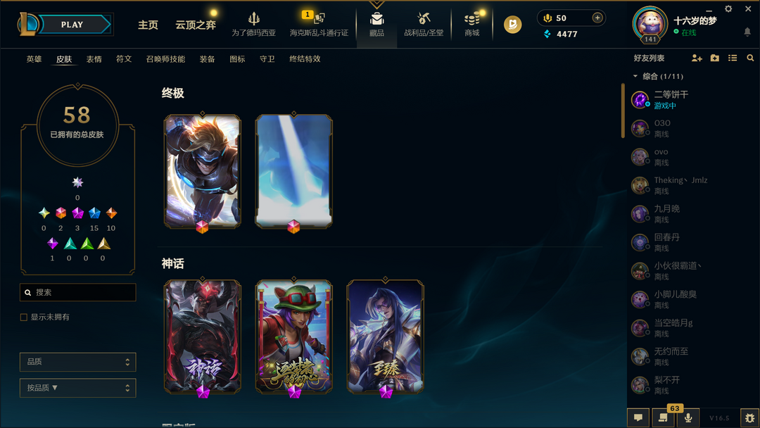 德玛西亚178皮肤1终极4神话23限定28传说31史诗