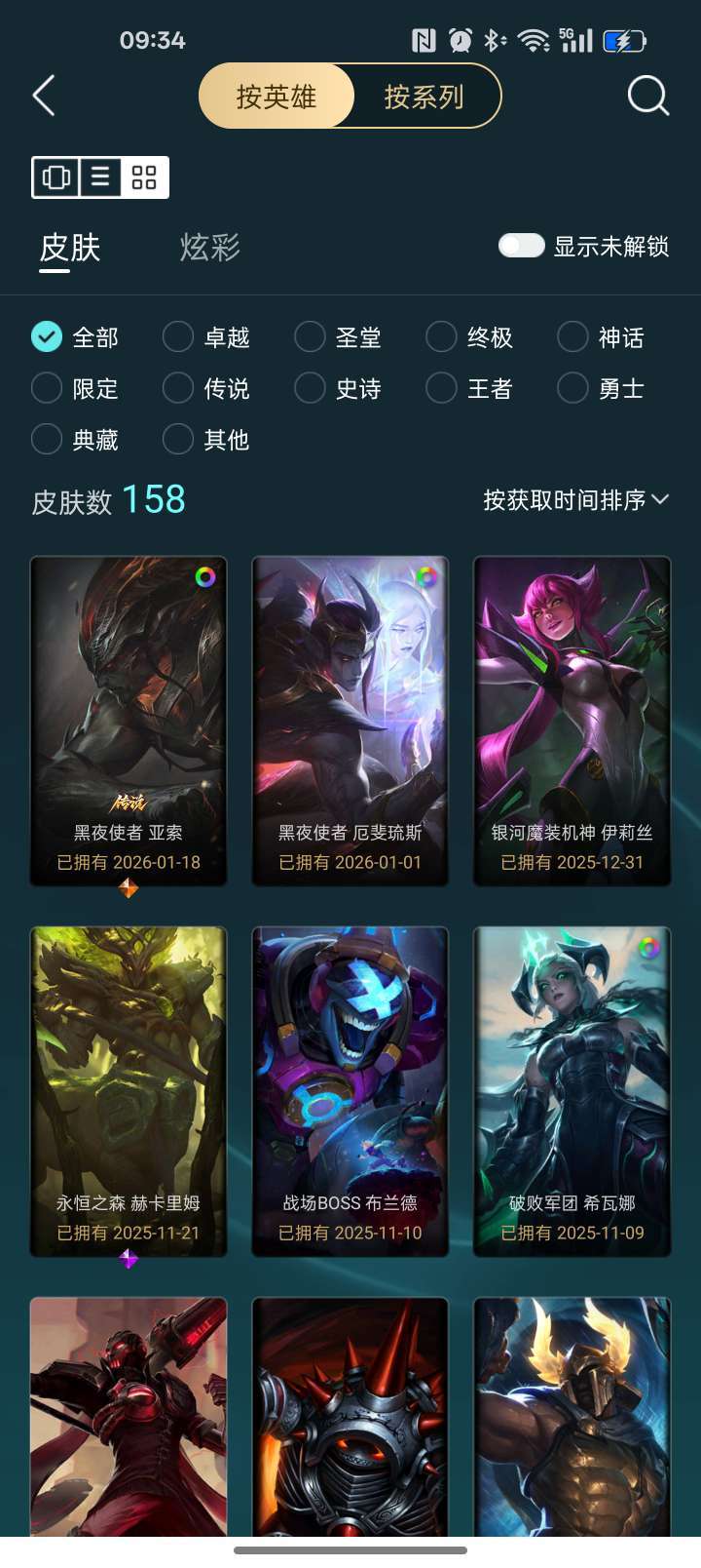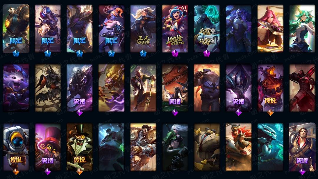 英雄上路每个角色皮肤几乎全有,然后全角色,排位翡翠铂金。长截屏有限,皮肤自己看,皮肤质量都比较高。。