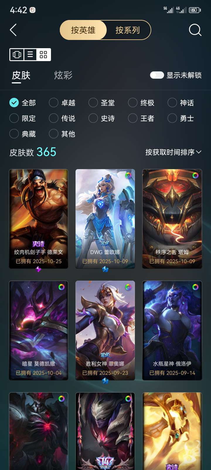 161英雄,359皮肤,大量至臻、海克斯皮肤,基本上每个英雄都有限定