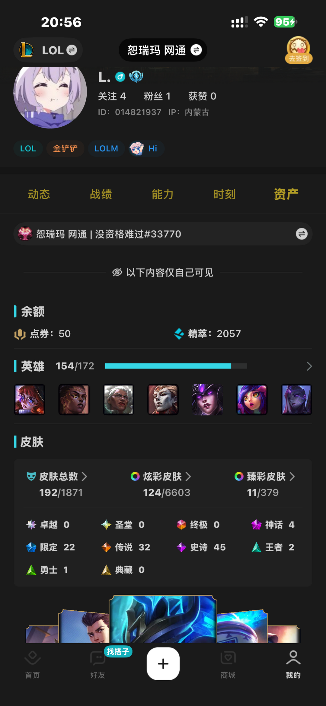 300+皮(12神话49限定37传说)全英雄,可排位,极速上号;云顶至臻阿狸一套+棋盘+攻击