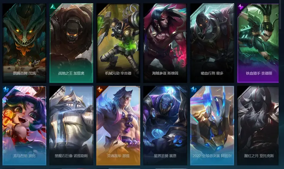 110皮+青铜白银黄金+精华皮肤+多英雄