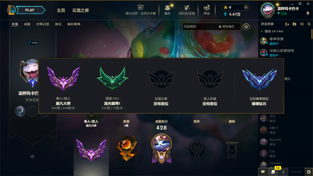 S15钻石可排位❤️单双钻石❤️ID可查❤️高分高端局体验❤️艾欧尼亚❤️进小店选更多账号哦