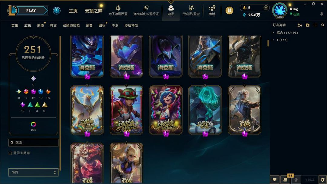 白银段位英雄联盟 可排 全英雄160 皮肤117传说 限定 史诗 亚索拳王
