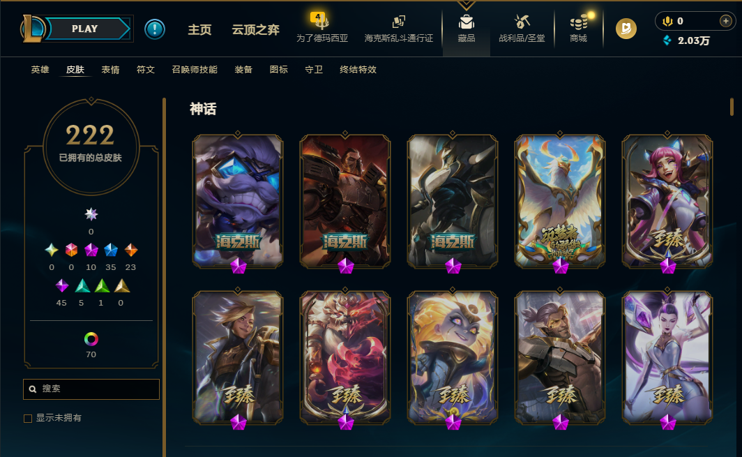 德玛西亚371P可排位云顶至臻亚索妹子神王德莱文剑魔黑色全英雄