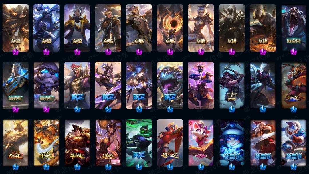 3000可排、海克斯鳄鱼、龙虾、至臻艾克/亚索、EDG/IG/FPX签名全套、神龙尊者李青、西部魔影