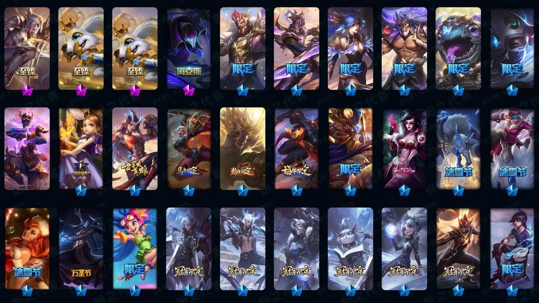 可排位200皮肤〓10至臻海克斯█至臻小小神龙亚索█各种特效皮肤
