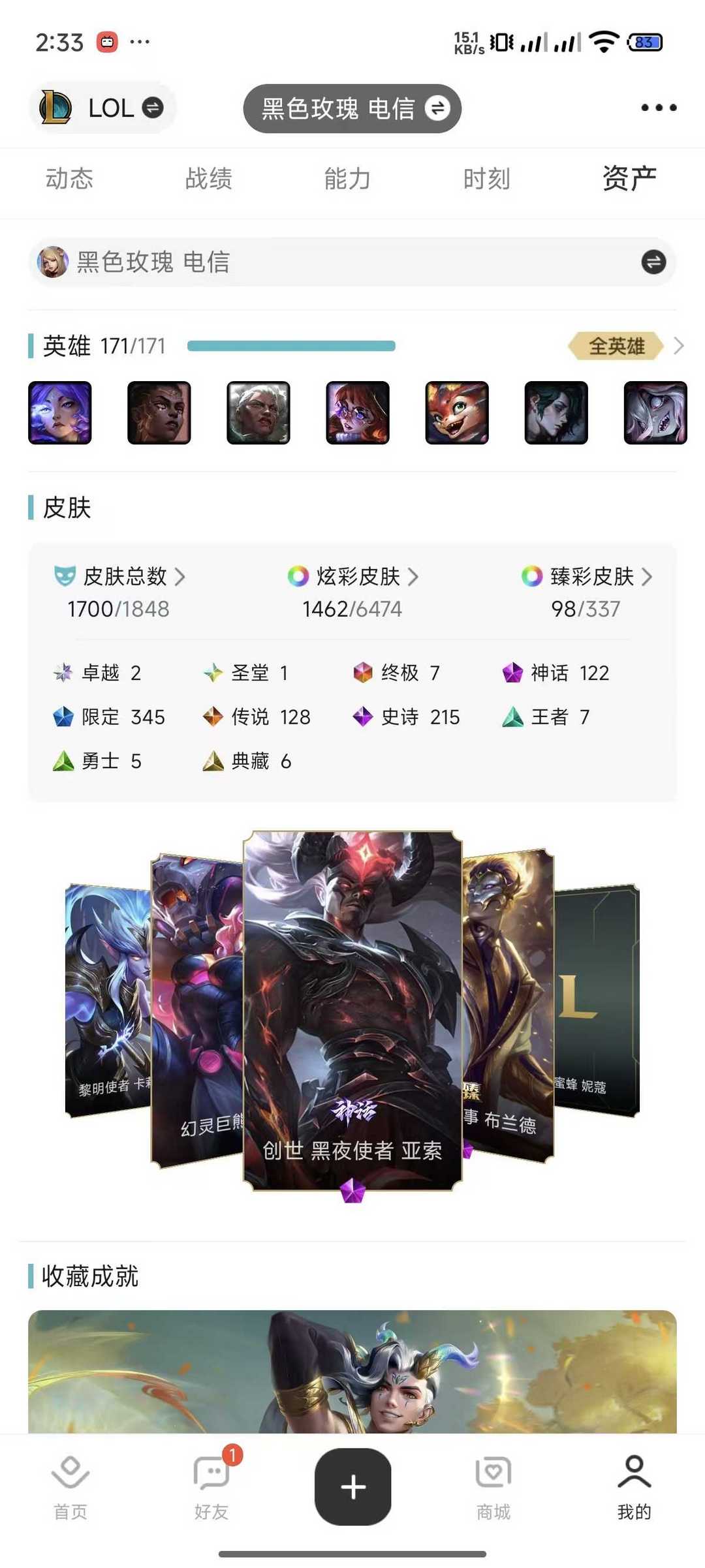 【电一 黄金精品号。1500+ 皮肤,,新p多多】,云顶神话多,终极皮肤满