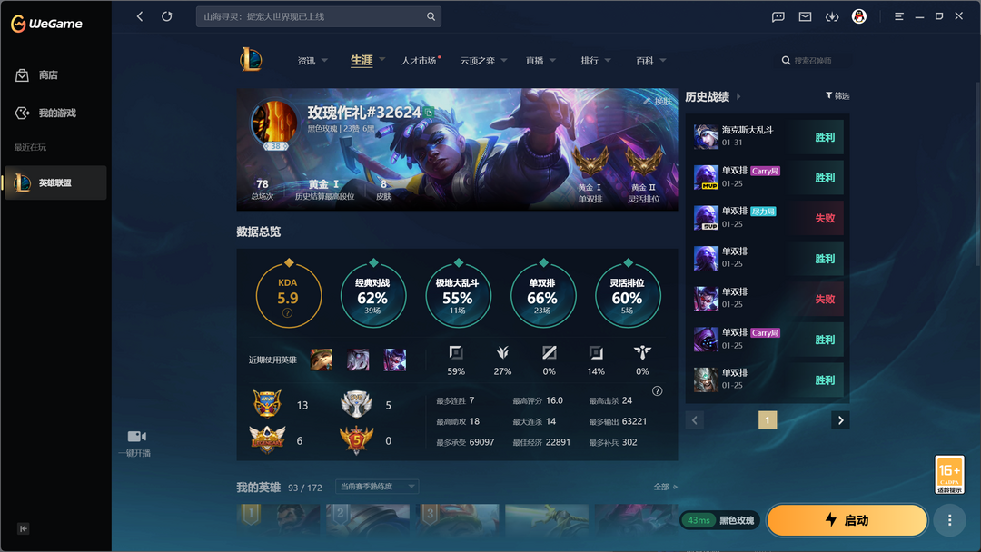 黑色玫瑰·单双黄金1·灵活黄金2·匹配-乱斗-斗魂低隐藏分(陪玩娱乐精品号)