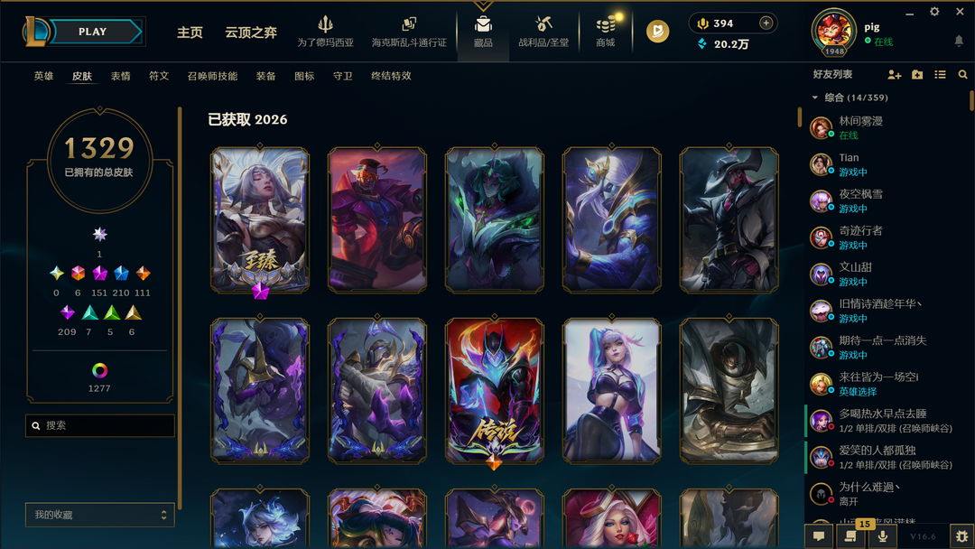 全至臻,全海克斯,170限定皮肤,110传说皮肤,全英雄,1200多原皮肤,1000炫彩可以打排位。
