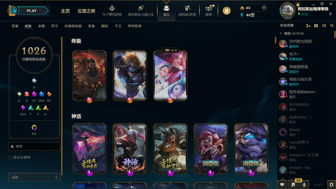 发条绝版头❤黑色玫瑰1446皮白银❤联盟不朽阿狸❤至臻格温❤全至臻神话❤全战队签名