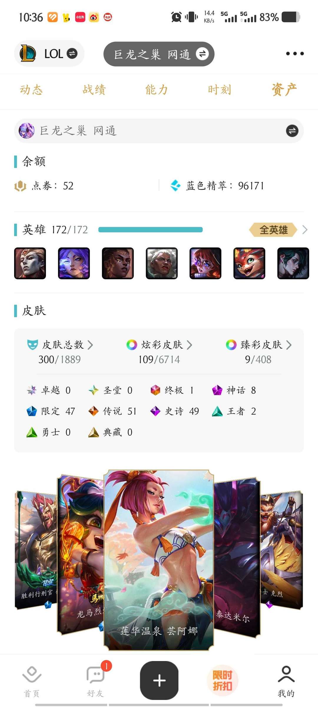 ⚡全皮453⚡原皮387⚡可排位⚡神龙尊者卡莎⚡花木兰⚡至高之拳李青⚡灌篮高手⚡真实描述⚡每日更新