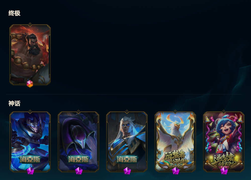 634皮⚡终极乌迪尔⚡灰烬派克铁男⚡海克斯炸弹人⚡心之钢永恩⚡龙瞎⚡天煞劫⚡西部卢锡安⚡神王诺手