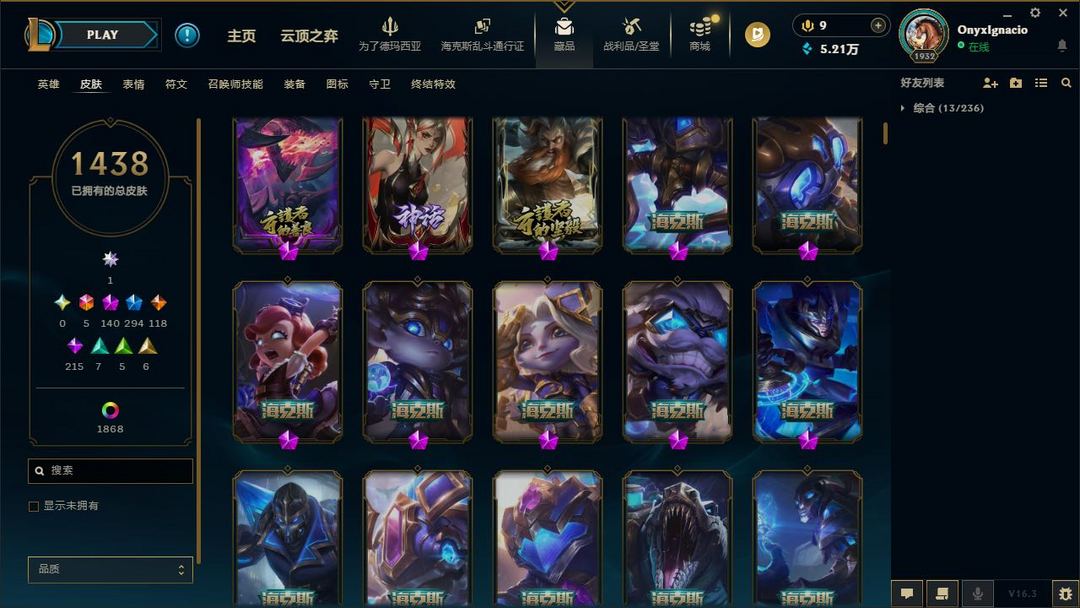【LOL大王】3300P乄1438原皮乄1868炫彩乄84臻彩乄140神话乄294限定乄殿堂阿狸