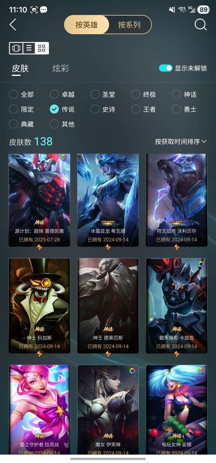 莉莉娅全皮,勇敢的心诺手,北极星皎月,EDG冠军套,至臻青花瓷冰女,海洋剑魔,神王诺手,源计划铁男。